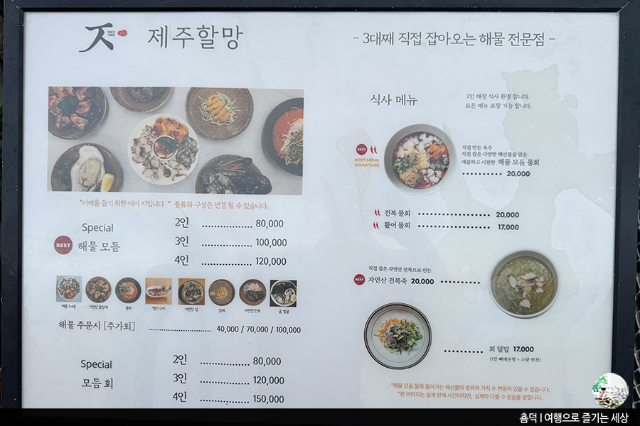 가게 벽면에는 많은 유명인들의 방문 사인이 붙어 있었다. 사천으로 촬영을 오면 많이 들르는 곳인가 보다. 그리고 이 식당이 3대째 내려오는 집이라 한다. 2대 해녀와 3대 해남이 운영하며 직접 잡은 해산물을 판매 한다해 미디어에도 노출이 된 유명식당이라니.
