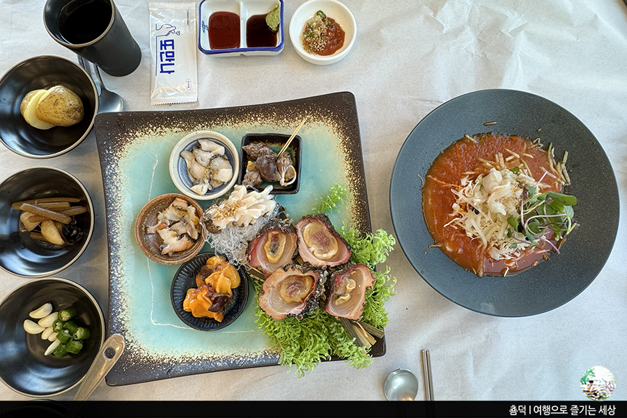 해산물을 시작으로 여러 반찬과 함께 모둠회가 나왔다. 테이블을 한가득 채운 찬들이 한 껏 먹음직스러워 보였다.