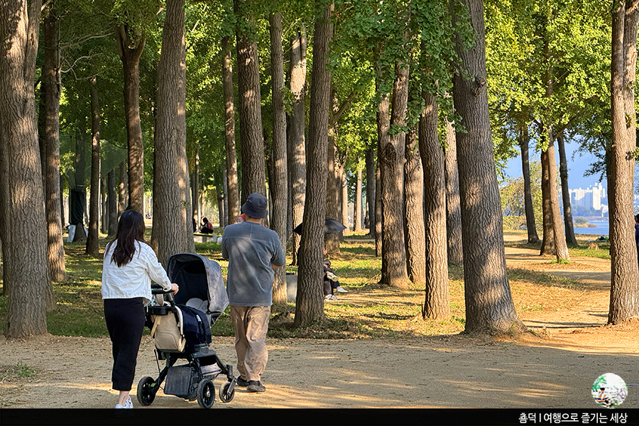 아직 은행이 노랗게 물들진 않았지만, 높이 솟은 은행나무 숲 사이를 산책하기도 좋았다. 다만, 곳곳에 떨어진 은행은 조심히 피해야 한다는 것.