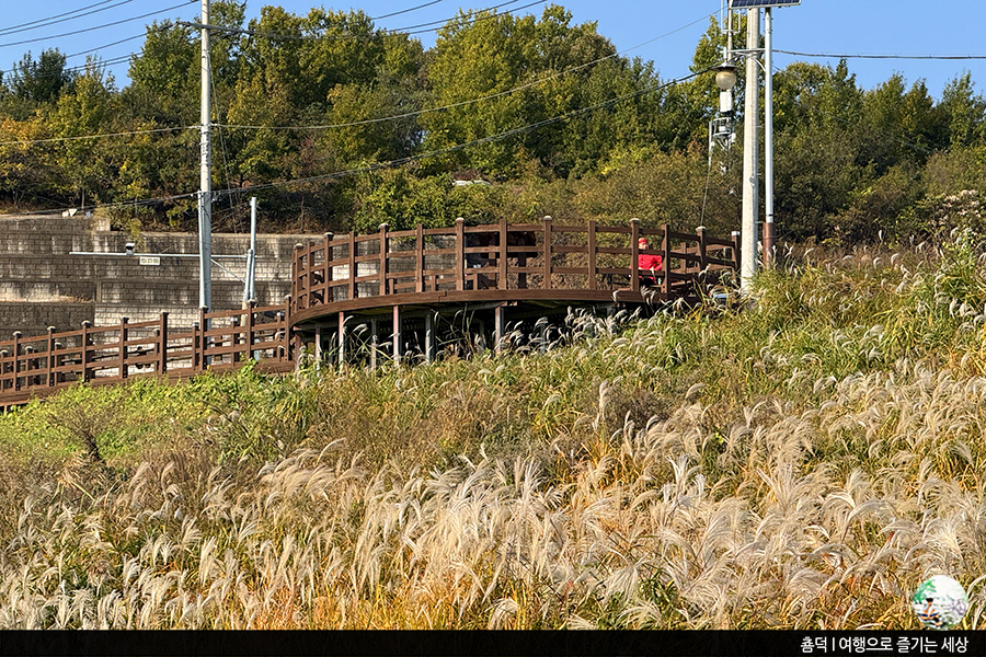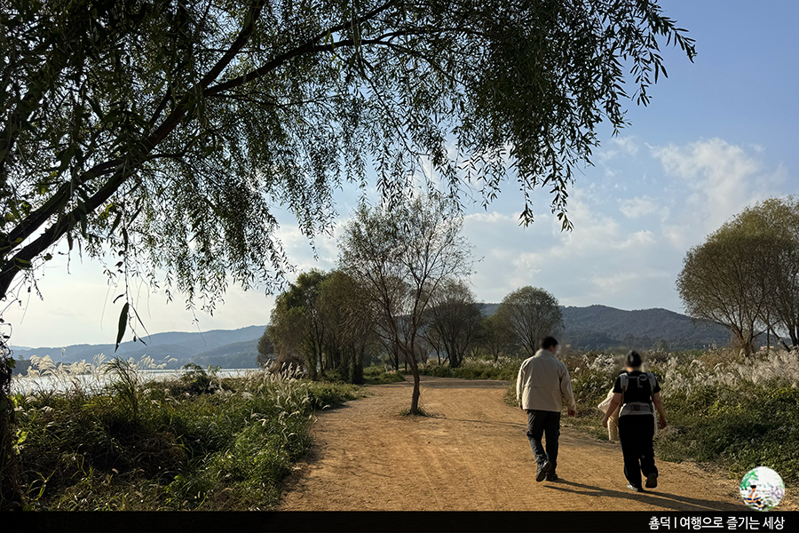 고령 다산 은행나무 숲은 코스모스 군락지, 강변산책로, 은행나무 숲 이렇게 세 곳이 큰 포인트인 것 같았다. 코스모스 군락지의 끝에 다다르니 강변산책로가 이어진다.
