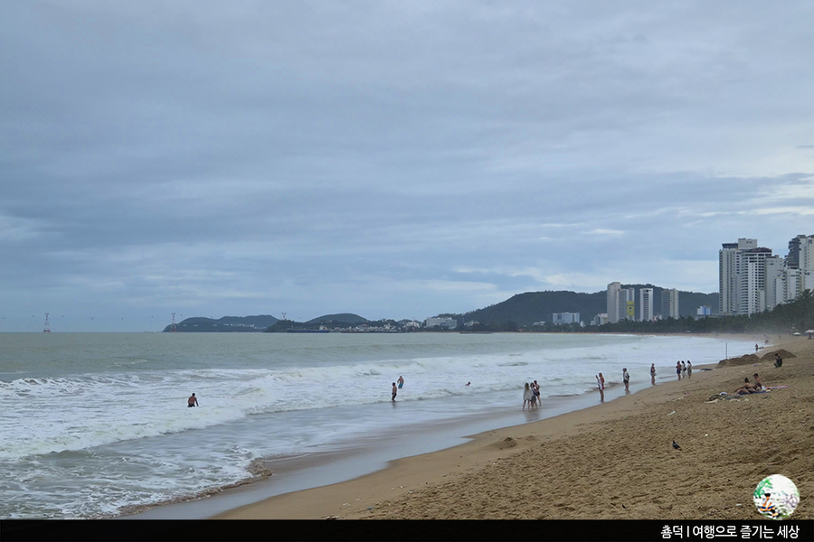 점심을 먹고 소화도 시킬 겸 <나트랑 해변>을 산책해 봅니다. 나트랑은 베트남의 대표 휴양지예요. 6km라는 길게 이어진 해변이 있어 어딜 걸어도 예쁜 바다를 볼 수 있다 들었어요. 하지만 우기의 나트랑은 꼭 그렇지만은 않았어요.