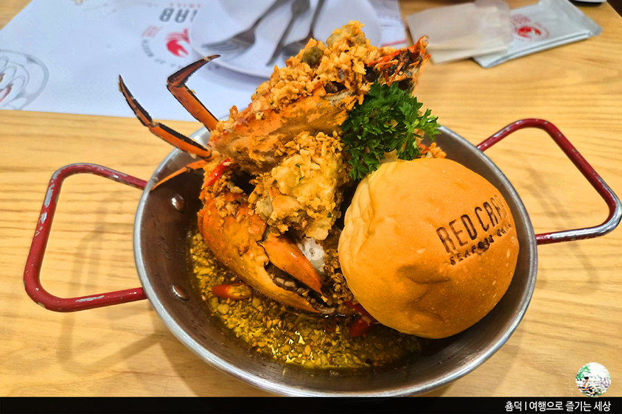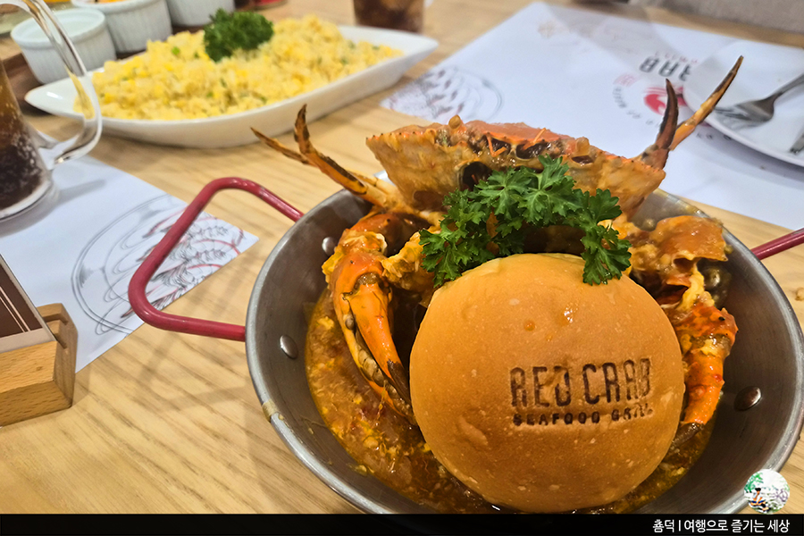 볶음밥과 함께 게 2마리를 시켜 저녁을 먹었어요. 맛은 괜찮지만, 가격면에서 호불호가 크게 갈리는 식당이 될 것 같아요. 동남아시아의 매력은 가성비인데, 레드크랩은 그렇지 못했거든요. 두 사람이서 이날 레드크랩에서 먹은 저녁 가격이 한국돈으로 12만원이 나왔으니까요. 그래서 가성비를 선호하는 여행객에게는 굳이 추천은 하지 않아요.