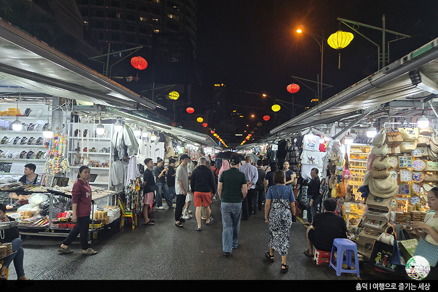 오후에는 숙소에서 잠깐 휴식 후 저녁 무렵, <나트랑 나이트 마켓>을 들러봅니다. 이번 여행, 관광지가 숙소에서 멀지 않은 곳에 있어 이동에 불편함이 없었어요. 나트랑은 이틀이면 다 볼 수 있다는 친구의 말이 괜한 말이 아니더군요.