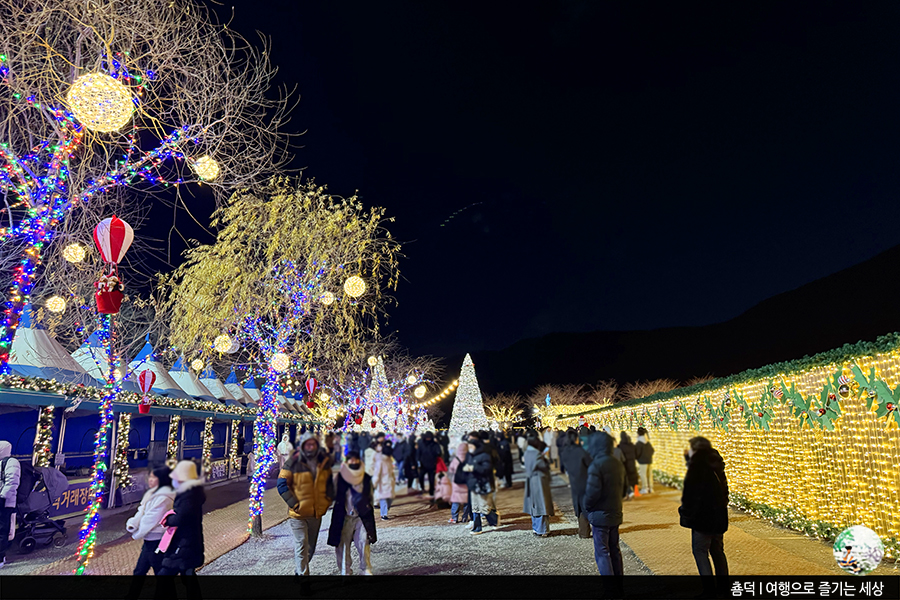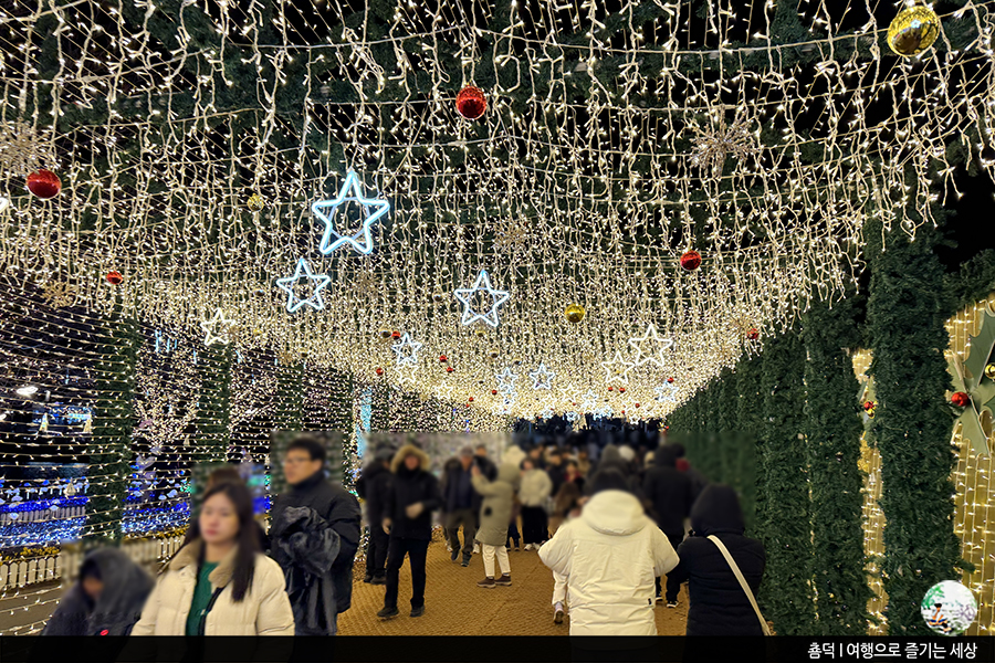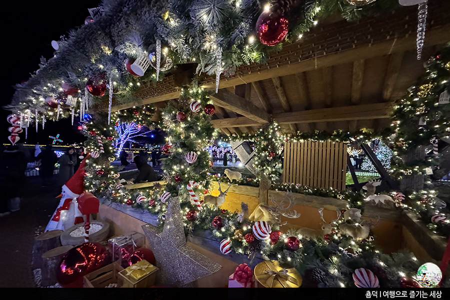 수많은 조명과 장식으로 장식된 산타마을 마법터널을 걸어봅니다. 환한 조명 덕에 예쁜 풍경도 많아 아이와 함께 방문해 예쁜 사진도 찍을 수 있어 가족과 함께 방문해 보시길!