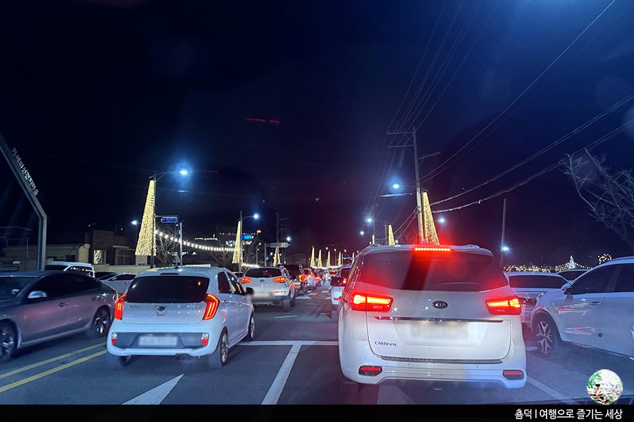 고속도로 톨게이트를 통과하는 순간부터 가다 서다를 반복하는 차량의 행렬들입니다. 평소면 10분이면 도착하는 거리를 이날은 40분이 걸려 도착했다는... 크리스마스에 행사 첫 주이기에 더욱 사람이 많았던 것 같아요.