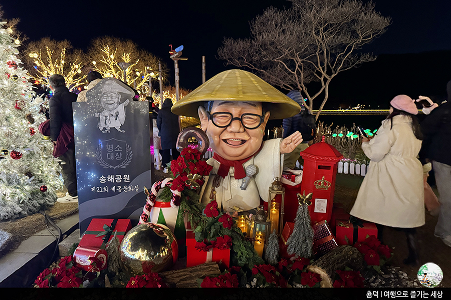 송해공원에 있는 송해선생님의 동상. 크리스마스라고 동상 주변으로 크리스마스 선물과 트리가 잔뜩 있더라고요! 매번 홀로 덩그러니 있었던 동상인데, 올해는 더욱 풍성해 보이는 동상이 개인적으로 마음에 들었어요.