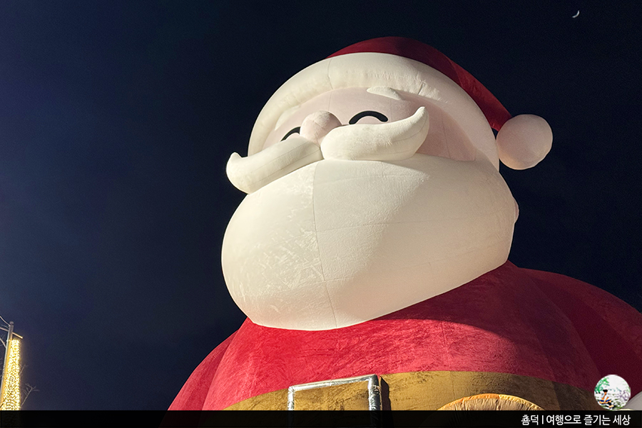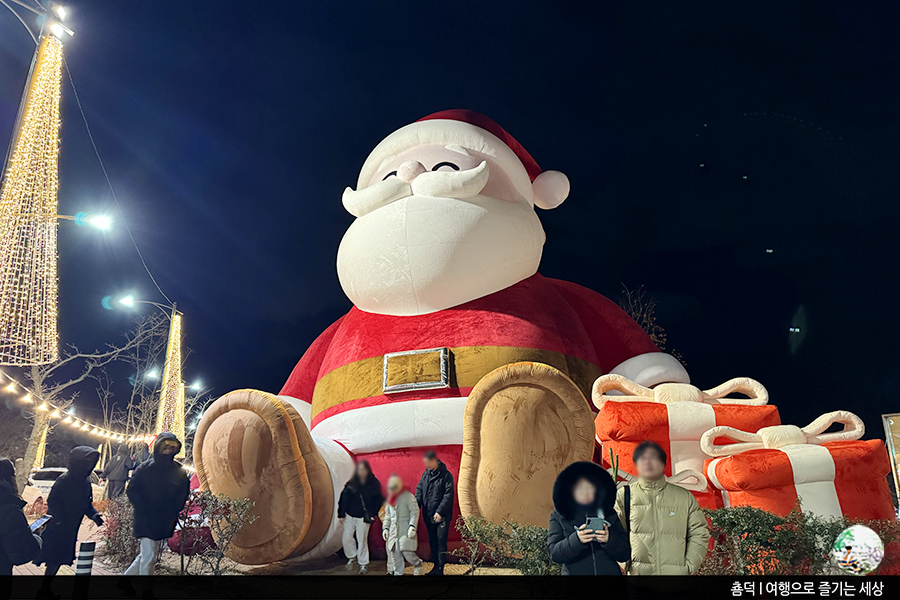 평소 1주차장 출입구로 송해공원을 오갔는데, 행사기간 동안에는 1주차장 출입구를 이용할 수 없다 하더라고요. 이유는 1주차장 입구 앞을 대형 산타가 자리 잡고 있더라고요. 거대한 산타와 사진을 찍기 위한 줄이 길게 이어져 있습니다.