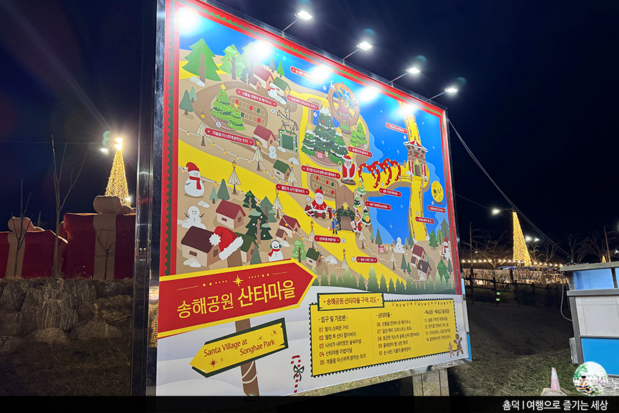 마법터널 반대쪽으로 나오니 조금 던 차에서 보던 대형 산타할아버지가 나타납니다. 그리고 산타마을 지도가 있으니, 송해공원 방문이 처음인 분은 이 지도를 참고해 산타마을을 둘러보는 것을 추천드립니다.