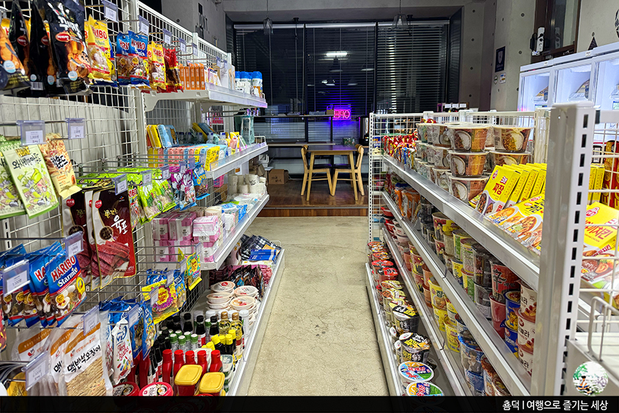 편의점이 많아 어디서든 쉽게 물건을 구입할 수 있는 요즘이지만, 숙소 부근 편의점 보이지 않더라고요. 하지만 영덕 비프리비펜션의 장점 중 하나는 바로 1층에 마련된 무인 편의점이었어요. 숙소 1층에서 각종 식품과 간식거리가 비치되어 식재료 걱정 필요 없었어요.