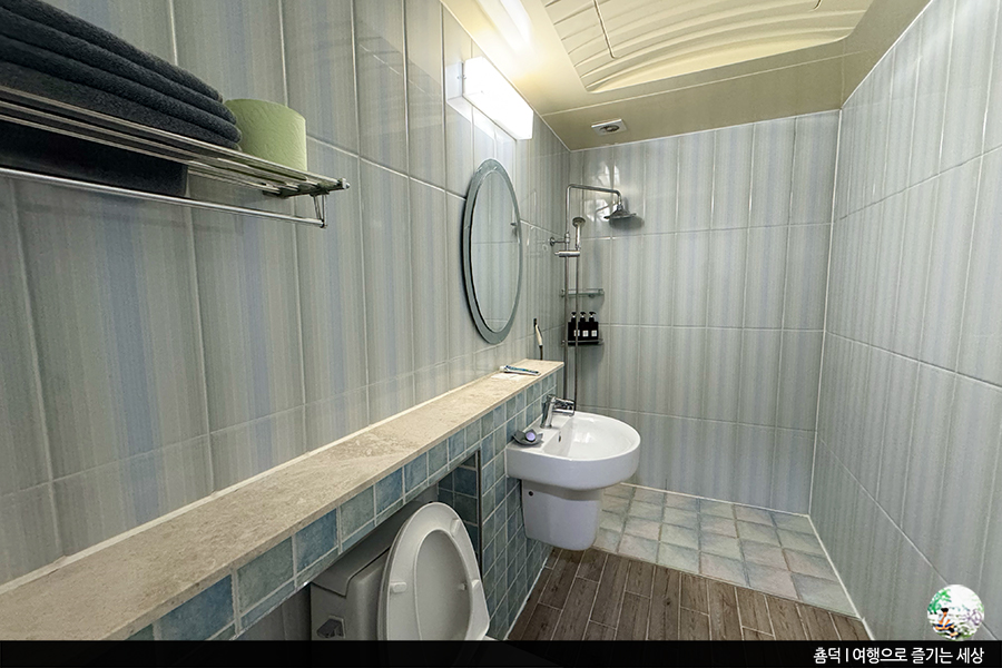 화장실은 객실마다 다른 것 같더라고요. 어떤 객실은 욕조 등 분위기도 다르던데, 저희 객실의 화장실은 옛 느낌이 올라옵니다. 그렇다고 아쉬운 건 없어요. 욕실에서 잠잘 것이 아니거든요. 따뜻한 물 잘 나오고, 배수만 잘되면 문제없어요.