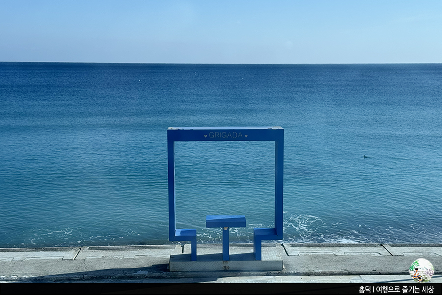 잠깐 카페에 앉아 음료를 마시며 영덕 바다를 구경해 봅니다. 카페 앞 바닷가에는 포토존이 많았어요. 영덕의 아름다운 바다 풍경으로 사진을 찍으면 엄청 잘 나올 듯!