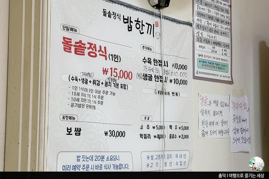 이곳 메뉴 고민할 필요가 없어요. 돌솥정식 (1인 15,000원) 단일메뉴거든요. 자리에 앉으면 곧 점원분이 식사 인원만 확인 후 상차림을 준비하십니다.