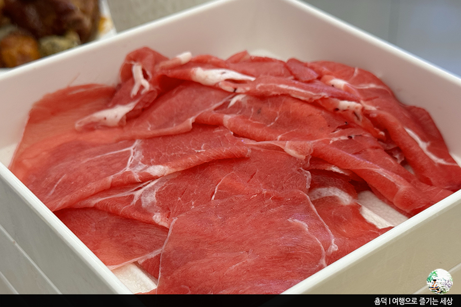 한국에는 샤브라 하면 빠질 수 없는 것이 바로 월남쌈이에요. 월남쌈을 만들 수 있는 야채가 한켠에 마련되어 있더라고요. 그리고 고기는 당연한! 고기가 무한 리필이라 고기 많이 먹을 수 있어 좋았던!! 라이스페이퍼와 함께 월남쌈에 들어갈 야채까지 가져와 본격적으로 먹을 준비를 해 봅니다.
