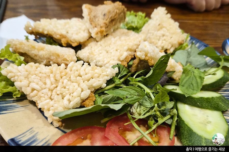 베트남 현지식 집밥을 판매하는 식당이었어요. 한국에서도 야식 대장으로 불리는 족발튀김을 판매하더라고요. 바삭하면서도 쫄깃한 족발을 매콤한 베트남 양념장에 찍어 먹으니 밥이 술술 넘어갑니다.